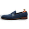 UMBERTO: It is the decent footwear that creates a ripple in your personality. This esthetic blue loafer is fabricated with high-grade Halal suede, a sheeny patent leather bar across the vamp, an engraved insole design pattern, apron toe, and leather inner sole with ZEEKI Trade Mark, highly designed by Italian artisans.